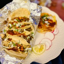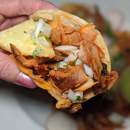 I'm actually surprised there is only one review for this Taco spot! I live right down the street and have been here many times throughout the years. This is the spot to get your traditional Mexican style tacos. They do have many other menu items from Tortas, burritos, Quesadillas, and most meats like Asada, Cabeza, Lengua, pollo, but what really makes this place stand out from the rest is their Al Pastor Trompo. When you order the Al Pastor tacos it's cut right in front of you and served with slices of pineapple for each taco. The service here is always on point. They move fast for the amount of customers they get. This place does get busy at night and is usually slow during the day. There isn't much parking since it is located in a Gas station lot but there is maybe 8 spots. Keep in mind this spot is CASH ONLY. There is an ATM at the gas station with a $3 charge maybe more now. Overall this place is a vibe if you're visiting LA or for the locals to come grab some delicious food and hang out out- doors with your friends and family.